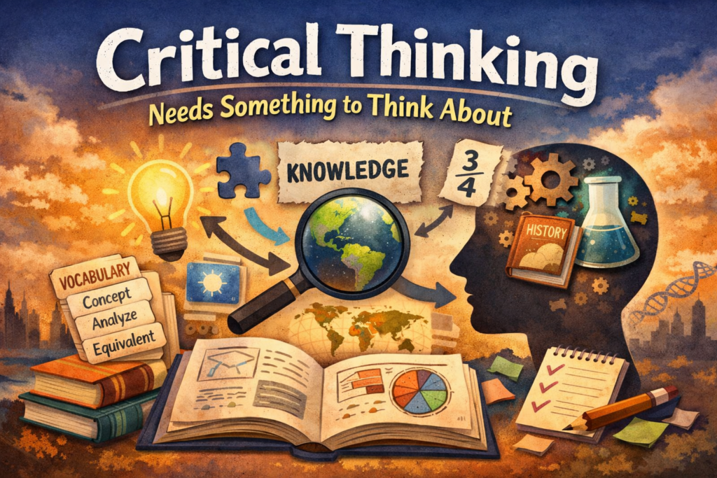 Except it does not work like that. Critical thinking depends on knowledge. Learners cannot think deeply about a topic they know little about. They cannot analyze ideas they do not understand. They cannot make strong judgments about content they cannot access. Thinking has to work on something. Knowledge is that something.